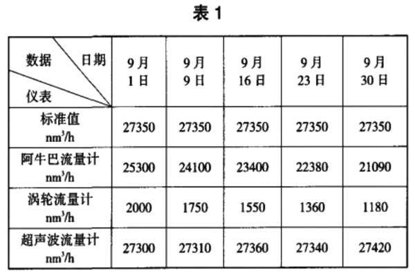 由表1和表2,在煤气计量中,超声波流量计运用很成功,解决了该厂多年来煤气计量不准的难题