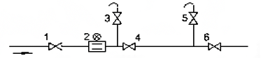 1, 4, 6截止阀; 2 流量传感器 3, 5 泄漏监视阀
