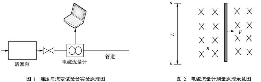 本文选用不同质量浓度的煤泥在装有电磁流量计的液压与流变试验台上(实验原理如图1)进行管道输送实验.电磁流量计根据电磁感应原理测量流过管道中导电流体旳流量.故使用电磁流量计的前提是被测流体必须导电。且电导率不能低于阈值(即下限值).通用型电磁流量计的阈值在(5×106)S/cmI04S/cm之间、若电导率低于阈值会产生误差甚至不能测量.根据电磁感应原理(如图2),当导电流体在磁场强度为B的磁场中切割磁力线时,在线形长度为L的a和b两点之间会产生感应电动势.为
