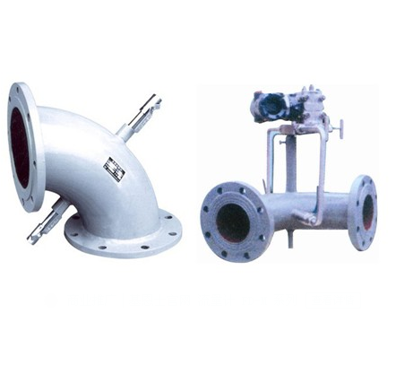 弯管流量计传感器适用温度、压力范围宽:-50~600℃,0~30Mpa。直管段要求低,前5D后10D